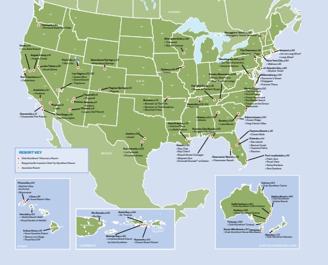 ALAZARCACOCTDEFLGAIDIL INIAKSKYLAMEMDMAMIMNMSMOMTNENVNHNJNMNYNCNDOHOKORPARISCSDTNTXUTVTVAWAWVWI WYU. S. A.MEXICOCANADAU.S. VIRGINISLANDSSt. Thomas Puerto RicoCARIBBEANBolongo Bay p.132%u2022 Limetree Beach Resort by Club WyndhamNazareth p.134%u2022 Elysian Beach ResortSmith Bay p.158%u2022 St. Thomas Rio Grande p.156%u2022 Rio MarBig IslandHAWAIIKauai OahuMauiHonolulu p.64%u2022 Waikiki Beach Walk%u00ae%u2022 Royal Garden at WaikikiKailua-Kona p.56%u2022 Kona Hawaiian Resort%u2022 Mauna Loa Village%u2022 Royal Sea CliffPrinceville p.59%u2022 Bali Hai Villas%u2022 Ka Eo Kai%u2022 ShearwaterLihue p.62%u2022 Kauai Beach VillasClub Wyndham%u00ae Discovery ResortMargaritaville Vacation Club%u00ae by Wyndham ResortAssociate ResortRESORT KEYAUSTRALIA/NEW ZEALANDWanaka p.170 %u2022 Club Wyndham WanakaGolden Beach p.166 %u2022 Club Wyndham Golden BeachCairns p.164 %u2022 Club Wyndham CairnsCoffs Harbour p.165 %u2022 Club Wyndham Coffs HarbourSydney p.168 %u2022 Club Wyndham SydneyTorquay p.169 %u2022 Club Wyndham TorquaySeven Mile Beach p.167 %u2022 Club Wyndham Seven Mile BeachAtlantic City p.88%u2022 Skyline TowerThe Poconos p.94%u2022 Shawnee VillageSmugglers%u2019 Notch p.138%u2022 Smugglers%u2019 Notch Vermont%u00aeWashington, D.C. p.22%u2022 Old Town Alexandria%u2022 National HarborWilliamsburg p.140%u2022 Governor%u2019s Green%u2022 Kingsgate%u2022 Patriots%u2019 PlaceMyrtle Beach p.103%u2022 The Cottages%u2022 Grand Palms%u2022 Ocean Boulevard%u2022 SeaWatch Resort%u2022 Towers on the Grove%u2022 WestwindsEdisto Island p.100%u2022 Ocean Ridge%u2022 King Cotton VillasDestin p.29%u2022 Bay Club%u2022 Bay Club II%u2022 Beach Street Cottages%u2022 Majestic Sun%u2022 Emerald Grande%u2122 at DestinDaytona Beach p.28%u2022 Ocean WalkClearwater Beach p.26%u2022 Clearwater BeachPanama City Beach p.50%u2022 Panama City BeachOrlando p.44%u2022 Star Island%u2022 Bonnet Creek%u2022 Cypress Palms%u2022 ReunionFort Lauderdale p.36%u2022 Palm-Aire%u2022 Royal Vista%u2022 Santa Barbara%u2022 Sea GardensWisconsin Dells p.146%u2022 Tamarack%u2022 Glacier CanyonGalena p.69%u2022 Galena Smoky Mountains p.120%u2022 Smoky Mountains%u2022 Great Smokies LodgeFairfield Glade p.116%u2022 Resort at Fairfield GladeNashville p.118, 154%u2022 NashvilleBranson p.74%u2022 Branson at The Falls%u2022 Branson at The Meadows%u2022 Mountain VistaNew Orleans p.70%u2022 Avenue Plaza%u2022 La Belle MaisonSan Antonio p.128%u2022 La Cascada%u2022 Riverside SuitesAustin p.126%u2022 AustinPagosa Springs p.18%u2022 PagosaSedona p.9%u2022 SedonaFlagstaff p.6%u2022 FlagstaffLake Tahoe p.80%u2022 South ShorePortland p.92%u2022 Portland Waterfront ParkLas Vegas p.82, 152%u2022 Desert Blue%u2022 Grand Desert%u2022 TropicanaPark City p.136%u2022 Park CitySan Diego p.16%u2022 Harbour Lights Santee p.115%u2022 Lake MarionOceanside p.15%u2022 Oceanside Pier ResortAnaheim p.10%u2022 AnaheimIndio p.13%u2022 IndioSteamboat Springs p.20%u2022 Steamboat SpringsSan Francisco p.17%u2022 CanterburyAngels Camp p.12%u2022 Angels Camp New York City p.90%u2022 Midtown 45Newport p.96%u2022 Inn on Long Wharf%u2022 Long WharfNapa p.14%u2022 Vino Bello ResortPhoenix p.8%u2022 Legacy Golf ResortAtlanta p.54, 150%u2022 Atlanta